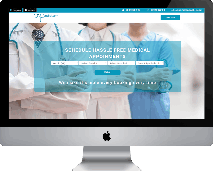 The appointment scheduling process, historically viewed as a burden in healthcare facilities, and wellness centers is completely automated through our efficient online scheduling platform. Finding a reliable doctor is difficult but more stressful is getting a hassle-free appointment with the doctor you trust. Our application provides an ultimate solution and helps people accomplish these tasks easily. The public could conveniently and securely book their appointments online - www.oponclick.com or oponclick application available in play store and app store.